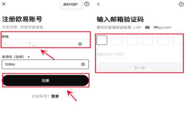 1.下载OKX APP后在首页点击“注册/登录”点击“立即注册”,输入邮箱地址,点击“注册”,然后输入邮箱收到的六位数字验证码,有效时间为10分钟