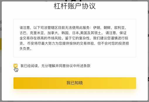 务必仔细阅读杠杆交易帐户协议。如您已经了解并同意其中的条款及准则,请勾选方框并点击“我已知晓”。