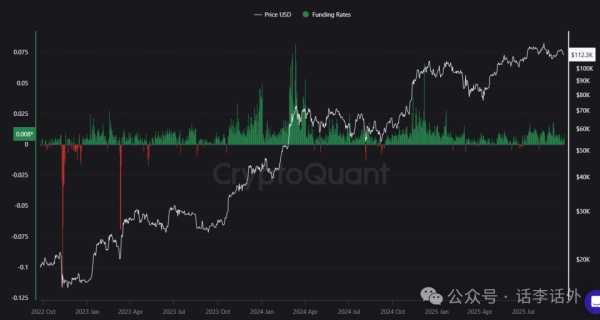 比特币的资金费率(Funding Rates)在今年突破 12 万美元以来,现在看起来还是继续处在相低位的水平区间,如下图所示,而这似乎也表明了人们对 BTC 的购买需求还没有真正达到情绪的最高点,根据历史经验来看,通常情况下,牛市的阶段性末期往往会先伴随着 Perps 的驱动,而目前 Perps 概念的火爆似乎也同时预示了今年第四季度的机会与风险。