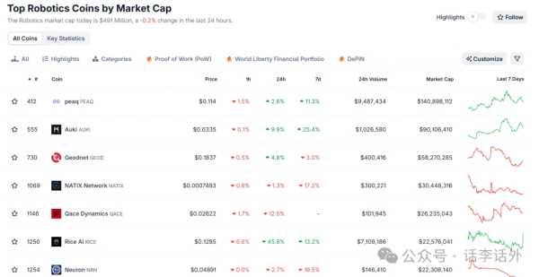因此,如果你喜欢寻找低市值早期机会,而且是那种能够符合未来发展大方向的机会,那么 Robotics 相关的项目就可以成为你小资金参与大机会的选择之一。
