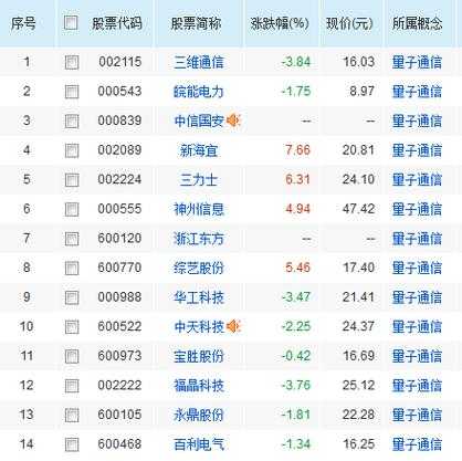 有一堆。但是龙通常是华工科技和神州信息,000988和000555。这两个票性会比其他票活跃。当然,中信国安也是概念,但是是偏向于360借壳概念的,量子通信表现不活跃。量子概念龙?