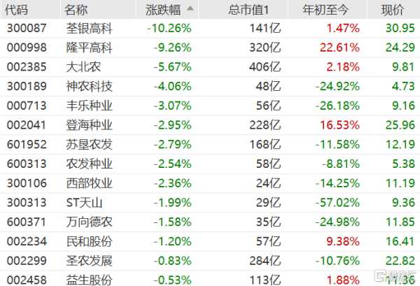 另外还有苏垦农发、金健米业、敦煌种业等。