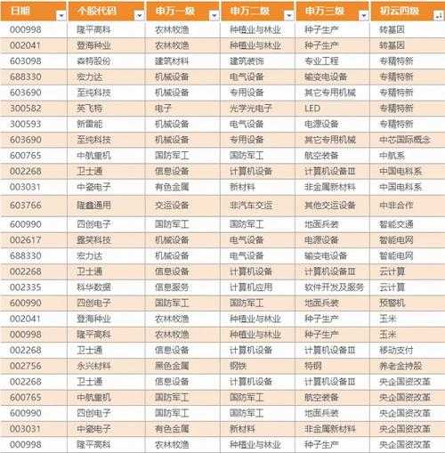 种植业、林业上市公司一览表 600540 新赛份 000713 丰乐种业 600506 香梨份 002041 登海种业 000998 隆高科 600975 新五丰 600127 金健米业 600265 景谷林业 000702 正虹科技 002200 绿 大 地 600359 新农开发 600108 亚盛集团 000972 新 中 基 000860 顺鑫农业 600189 吉林森工 600257 洞庭水殖 600965 福成五丰 000918 S ST亚华 000722 *ST 金果 600313 ST中农 000557 ST银广夏 000061 农 产 品 600195 中牧份 000798 中水渔业 002173 山 下 湖 600467 好当家 000663 永安林业 002086 东方海洋 600844 丹化科技 600251 冠农份 000735 *ST 罗牛 000048 *ST 康达 900921 丹科B 600695 ST大江 600598 北大荒 600438 通威份 600354 敦煌种业 600311 荣华实业 600180 九发份 600093 禾嘉份 002100 天康生物 000876 新 希 望 900919 ST大江B 200992 中 鲁B 002069 獐 子 岛 600275 *ST昌鱼 000780 ST 能 000588 PT粤金曼 600762 *ST金荔 600709 ST 600181 *ST云大