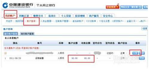 1.如已开通建行个人机银行,请登录版机银行,进入“首页—自定义快速链接—账户”菜单,查询对应账户余额,若要查询明细,可点击需查询账户下方的“详情”按钮,选择所需查询的“活期储蓄”或其他子账户即可。(温馨提示:在机银行首页中的“自定义快速链接”栏位若未看到“账户”菜单,请点击“自定义快速链接”栏位的“+”进入后查找“账户”功能。)