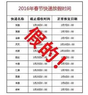 顺丰春节快递停运时间: