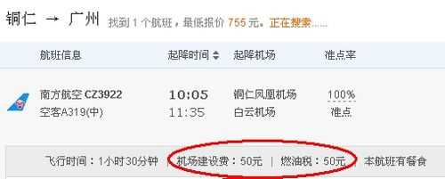 如:深圳直飞哈尔滨机场建设费加燃油,税是90。