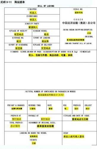 海运排载单的英文?