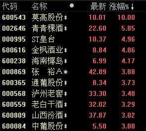 红酒就五只票,张裕A(000869SZ)ST通葡(600365.SH)、ST威龙(603779.SH)、莫高份(9.06,+9.95%)(600543.SH)和ST中葡(600084.SH)