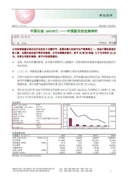 石油,A上市公司,票代码601857,公司主营业务是石油,天燃气,煤层气,页岩气,页燃油,天燃气水合物等等,该公司油气行业生产销售商,2021年3季报每收益0.41元,营业收入1.88万亿元,净利润751.22亿元,12月3日收盘价是4.92元,