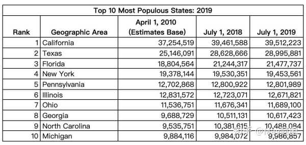 美国各州人口排名2019?