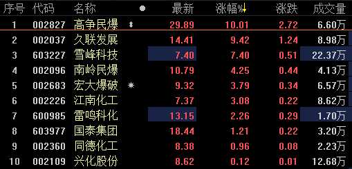 高争民爆,南岭民爆,雷鸣科化,九联发展,江南化工,宏大