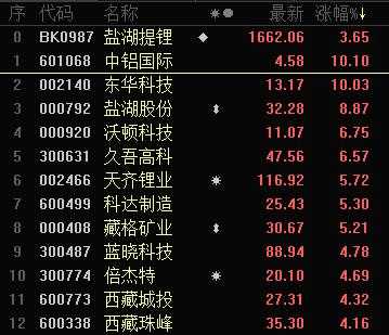12、矿业(000762)公司拥有开采权的扎布耶盐湖是世界第三大、亚洲大锂矿盐湖,已探明的锂储量为184.10万吨,是富含锂、硼、钾固、液并存的特种综合性大型盐湖矿床。