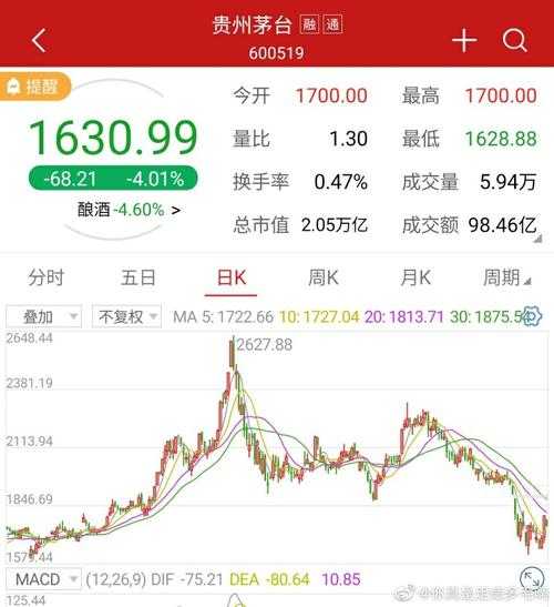2008年1月,贵州茅台价为230.55元,到2008年11月时,触及84.20元。