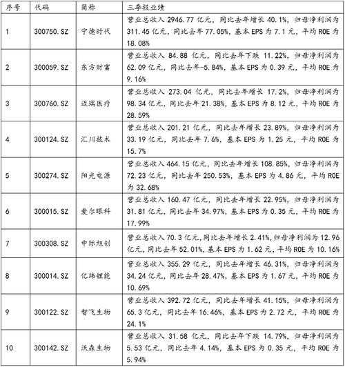 1、300136信维通信2、300104乐视网3、300059东方财富 4、300072三聚5、300124汇川技术6、300070碧水源 7、300024机器人8、300408三环集团9、300017网宿科技 10、300088长信科技11、300146汤臣倍健12、300676华大 13、300618寒锐钴业14、300053欧比特15、300078思创医惠
