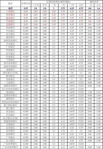2011年银行存款利率进行了3次调整,2011年2月9日调整后定期存款三个月为2.6%,半年为2.8%,一年为3%,二年为3.9%,三年为4.5%,五年为5%,活期存款利率为0.4%。总来说银行定期利率相对稳定,比起活期利率要合算的很多,如果是闲钱可以考虑存定期存款。
