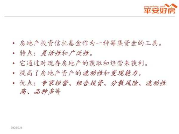 房地产信托投资基金(REITs)是房地产证券化的重要段。房地产证券化就是把流动性较低的、非证券形态的房地产投资,直接转化为资本市场上的证券资产的金融交易过程。房地产证券化包括房地产项目融资证券化和房地产抵押证券化两种基本形式。