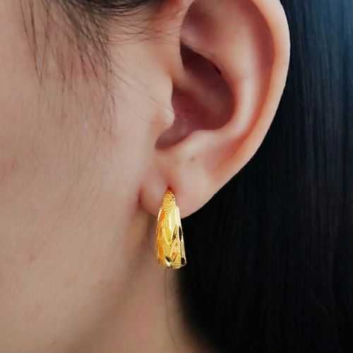 4) 根据自己的年龄、型、肤色、脸型来选购黄金耳环:年轻人以选择式样新颖多姿,色调明丽多彩,偏低些的为好,以便随款式流行而更换,显示出年轻人的活力。中老年妇女一般以选择做工比较考究,质地偏于,色彩稳重的为宜。身材苗条、皮肤细嫩者,适合佩戴有深色宝石的饰品,戒指圈偏窄些为好;胖、肤色黑的宜佩戴透明度好、浅色宝石的黄金耳环,阔圈的戒指。另外,脖颈较长的适合佩戴垂挂型耳环。脖颈较短的姑娘,则应选戴颗粒状的耳坠。