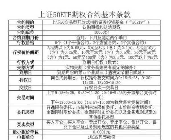 以下是科创板50ETF期权交易规则及费用的一般情况说明:1. 交易时间:科创板50ETF期权在交易日上午9:30-11:30和下午13:00-15:00进行交易,与科创板ETF的交易时间一致。2. 权利金:买方在购买期权合约时需要支付权利金,该费用是期权交易的基本费用。3. 合约单位:科创板50ETF期权的合约单位为10000份,即每期权合约对应的标的资产为10000科创板ETF。4. 行权方式:欧式期权,即只能在到期日当天行权。5. 续费:期权交易需要支付一定的续费,包括买卖双方的佣金费用和交易所交易费用等。具费率可以咨询期货公司或券商。需要注意的是,期权交易涉及到杠杆,具有较高的风险。投资者在进行期权交易前应该详细了解相关规则和费用,并根据自身的风险承受能力做出相应的投资决策。在进行期权交易时,可以咨询期货公司或证券公司的,获得更详细的交易规则和费用相关信息。