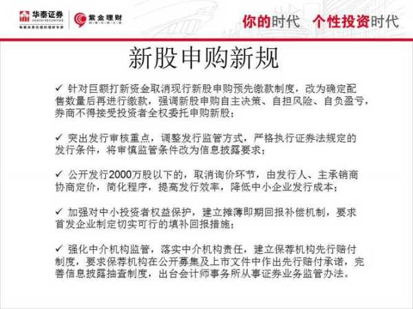 >>2016年起执行的新申购新规针对巨额新资金取消现行新申购预先缴款制度,改为确定配售数量后再进行缴款,强调新申购自主决策、自担风险、自负盈亏,券商不得接受投资者全权委托申购新;