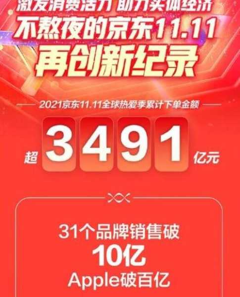 2021年11月12日零点,“双11”累计销售金额超3491亿元!再创新纪录。今年“双11”共有31个销售破10亿元,Apple破百亿元;超500万农户实现增收;43276个商家成交额同比增长超200%,中小新增数量同比增长超4倍;物流绿色供应链共减碳2.6万吨,使用包装1135万次。