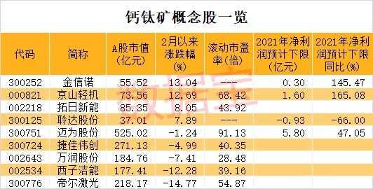 钙钛矿电池概念票名单一览表: