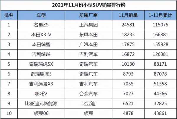 据汽车流通协会汽车市场研究分会(乘联会)零售数据统计,11月份国内狭义乘用车市场达181.6万辆,同比下降12.7%,环比增长6.0%;1月-11月份累计1804.1万辆,同比增长6.1%。其中SUV在11月份的总为84.1万辆,同比下滑12.6%,环比增长7.0%;1月-11月SUV车型累计销售826.1万辆,同比增长5.0%。下面,我们一起来看看11月排名前十的SUV都有哪些车型以及它们的具表现。