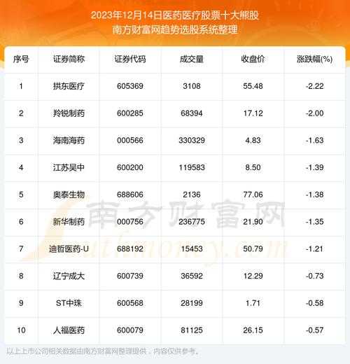 医药板块前十的票?