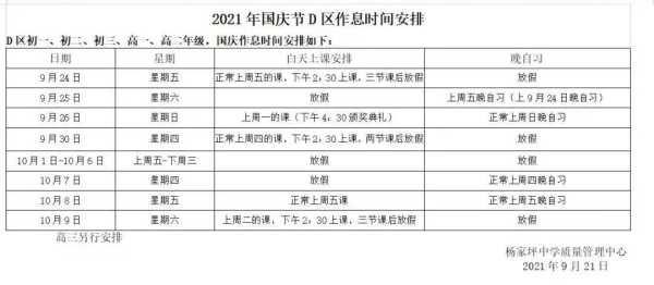 二零二一年小生放假应该是跟法定假日一样为十月一日至十月七日,一共八天假。因为今年提倡生减负和不允许参加校外的培训,所以国庆假日校不能安排补课之类的活动,如有需要须报相关部门审批后才能进行。还没结束,假期大家也不要进行一些危险的活动