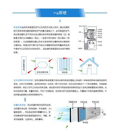 机的原理系利用涂布在转轮上的硅胶将空气中的水份以物理方式吸附于具多孔性之合成硅胶上,然后在转轮区,将吸附在硅胶孔洞的水气加热汽化,至交流式热交换器入口处,形成高温高湿的空气,接着再经过已被室内冷湿空气降温的热交换器时,由于差异而成凝结水排出。