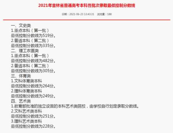 2021年吉林分数线公布!文科一本519分,理科一本482分,比去年大幅度下降。