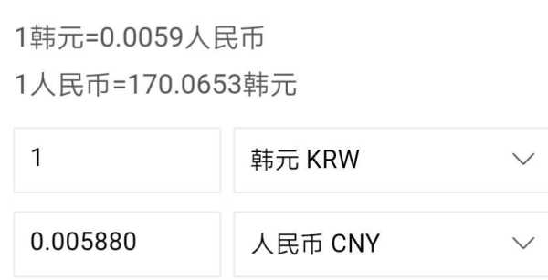 5、韩元=270350人民币1人民币=189454韩元汇率换算公式:汇率升贬值率=(旧汇率/新汇率-1)*100。