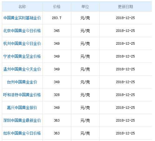 5、价格有275至330元的,18K是指成分的75%为黄金的首饰或金制品。18K的首饰显黄色或白色(由另外25%的成分决定),白色的18K通常叫“白金”。比如黄金首饰320元每克,交易价258,回收价256元。