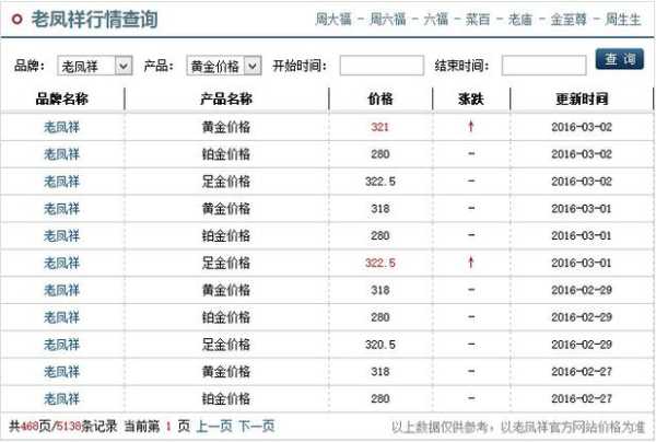 5、黄金基础价格381元/克。国内黄金知名品牌有很多,例如:周大福、周生生、老庙黄金、老凤祥、菜百、六福、金至尊等。