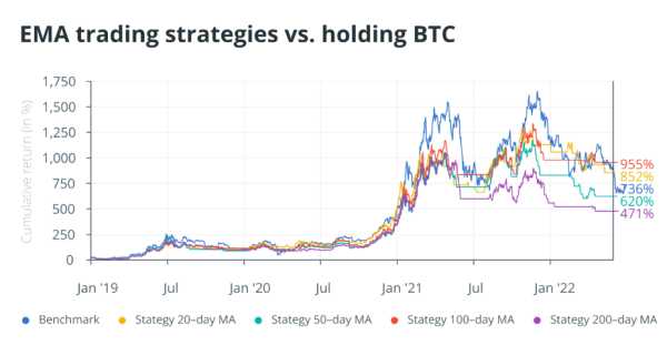移动平均线(SMA/EMA交叉):通过观察短期指数移动平均线(EMA)何时越过或低于长期简单移动平均线(SMA)来跟踪趋势。EMA对最近的价格数据赋予更大权重,使其能更快响应市场变化,而SMA计算选定时期内的平均收盘价,以更平滑地查看整体趋势。