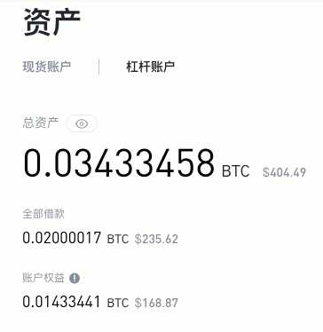 接下来,您的杠杆交易账户将会被存入您所借贷的比特币。之后您就可以使用该借贷资金来进行交易,同时您也就拥有了0.02BTC以及相应利息的债务。而该利息率将会每小时更新。您可以在杠杆交易费用页面查看可用的代币以及对应利率。